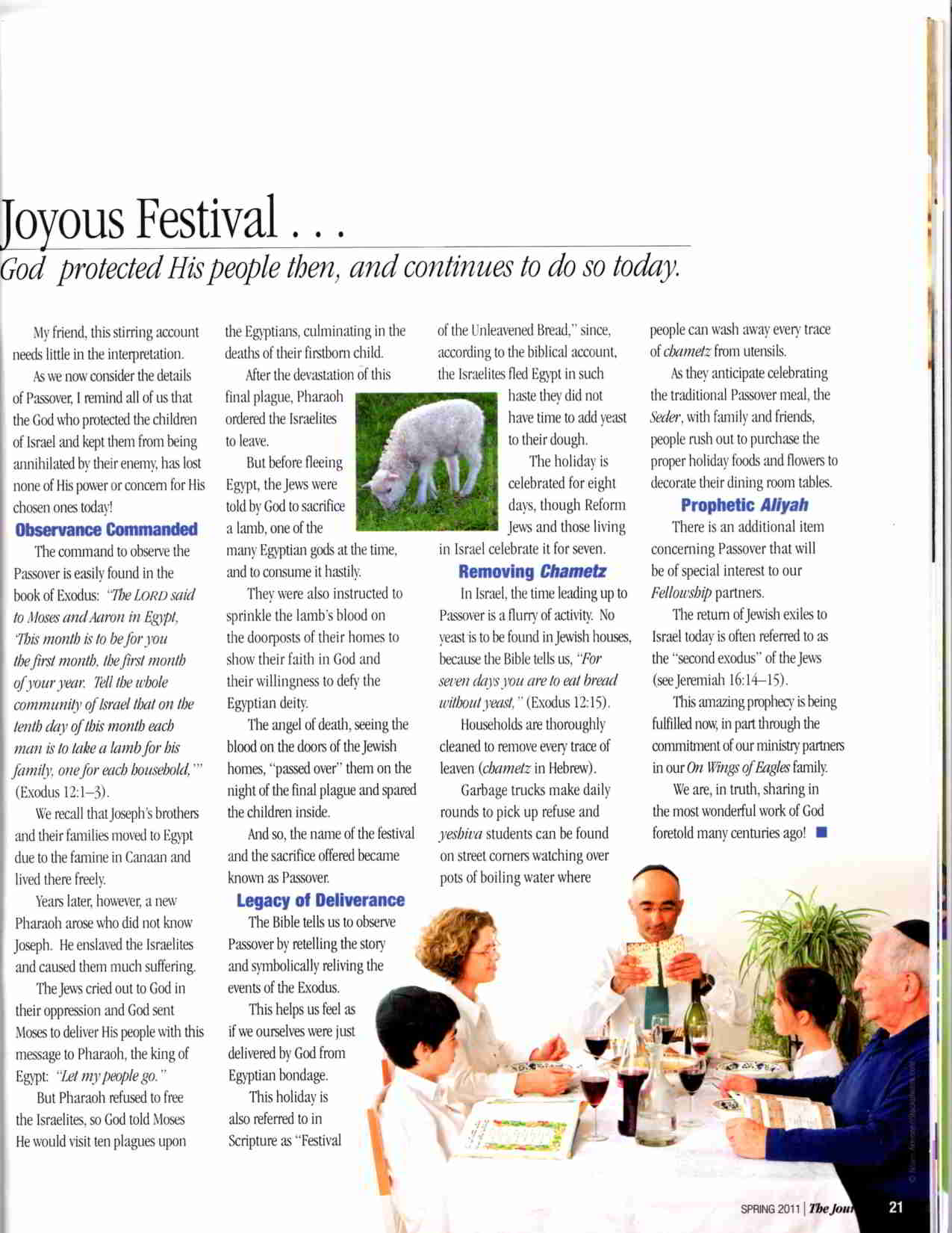 Article from Rabbi Yechiel Eckstein on Passover -- Passover Article (part1), (part2)